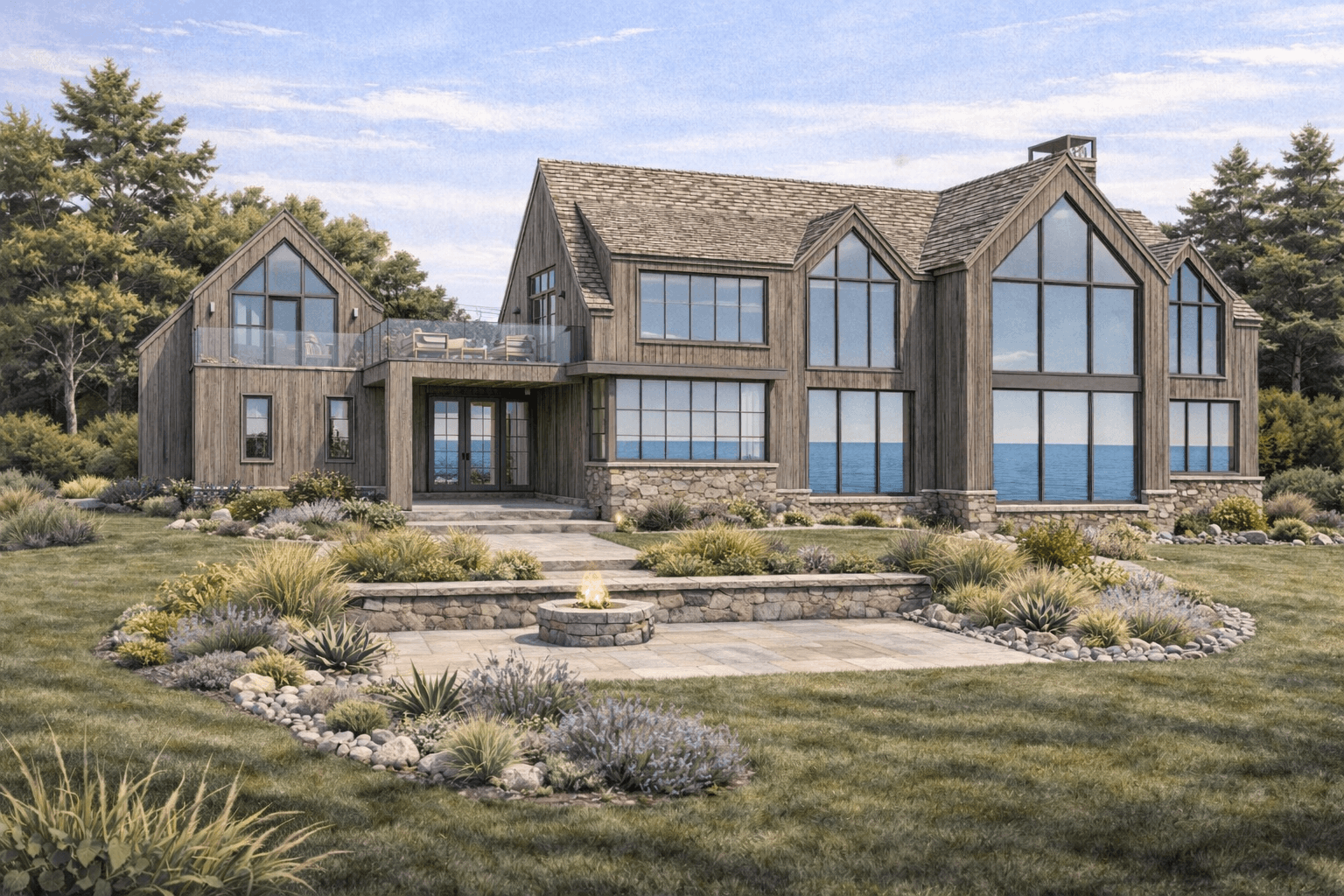 Freshwater Development is planning construction of a 4,500-square-foot custom home set on 2.31 acres with 175 feet of private Lake Michigan frontage. Designed to embrace its extraordinary natural setting, the home includes six bedrooms, five bathrooms, two primary suites, and multiple outdoor living spaces, all carefully positioned to capture dramatic lake views while connecting to the surrounding private woodlands and meandering creek.